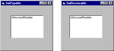两个窗口可以有名为 IstAcctNo 的列表框。通过引用包含列表框的窗体就可准确指定要使用的列表框: